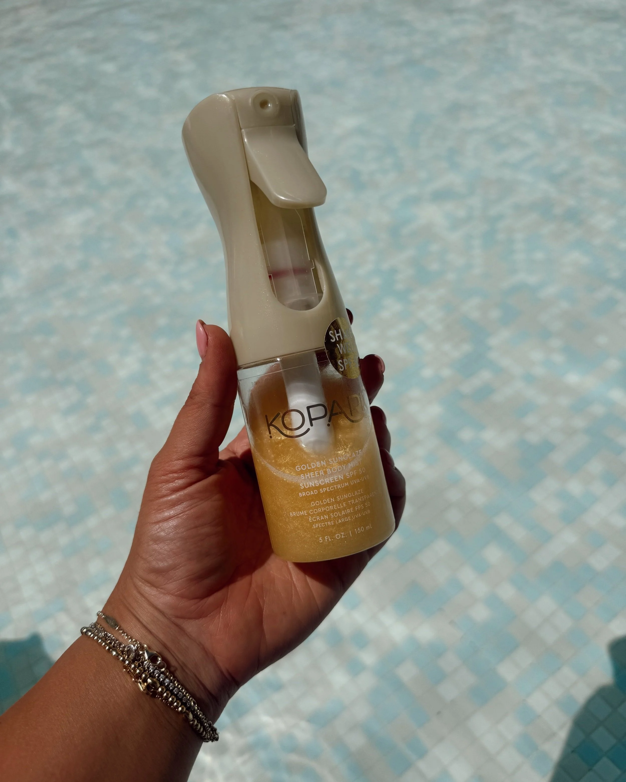 One of my longtime favorite sunscreens was recently discontinued, so I decided to take a chance on this one, and I’m so glad I did. It ended up being such a hit, our whole group used it (even the pool neighbors borrowed some!), and we finished the entire bottle by the end of the trip. It lives up to the hype, no glitter, just a beautiful, hydrating glow that makes your skin look fresh and feel amazing. For more SPF favorites, check them out here!