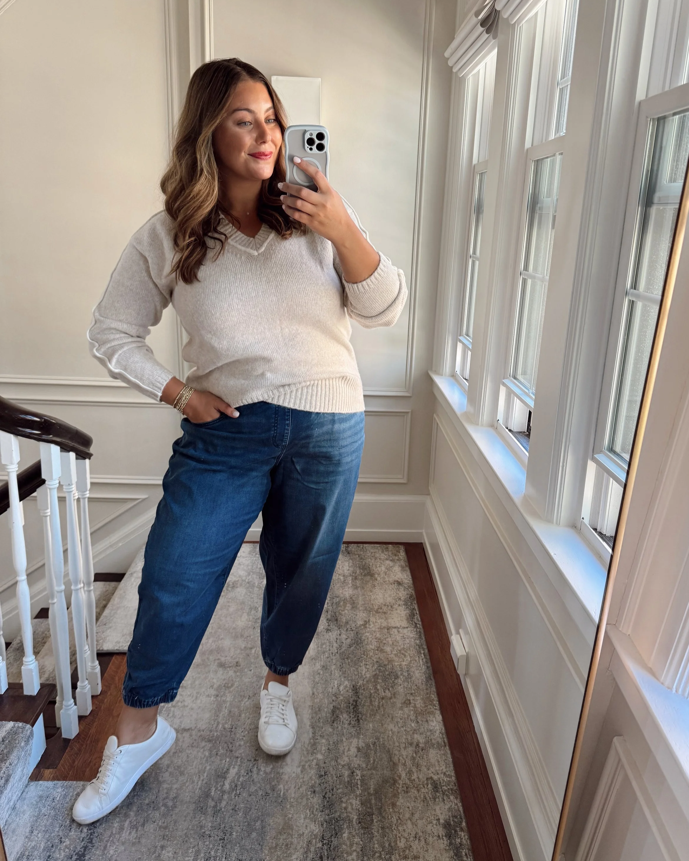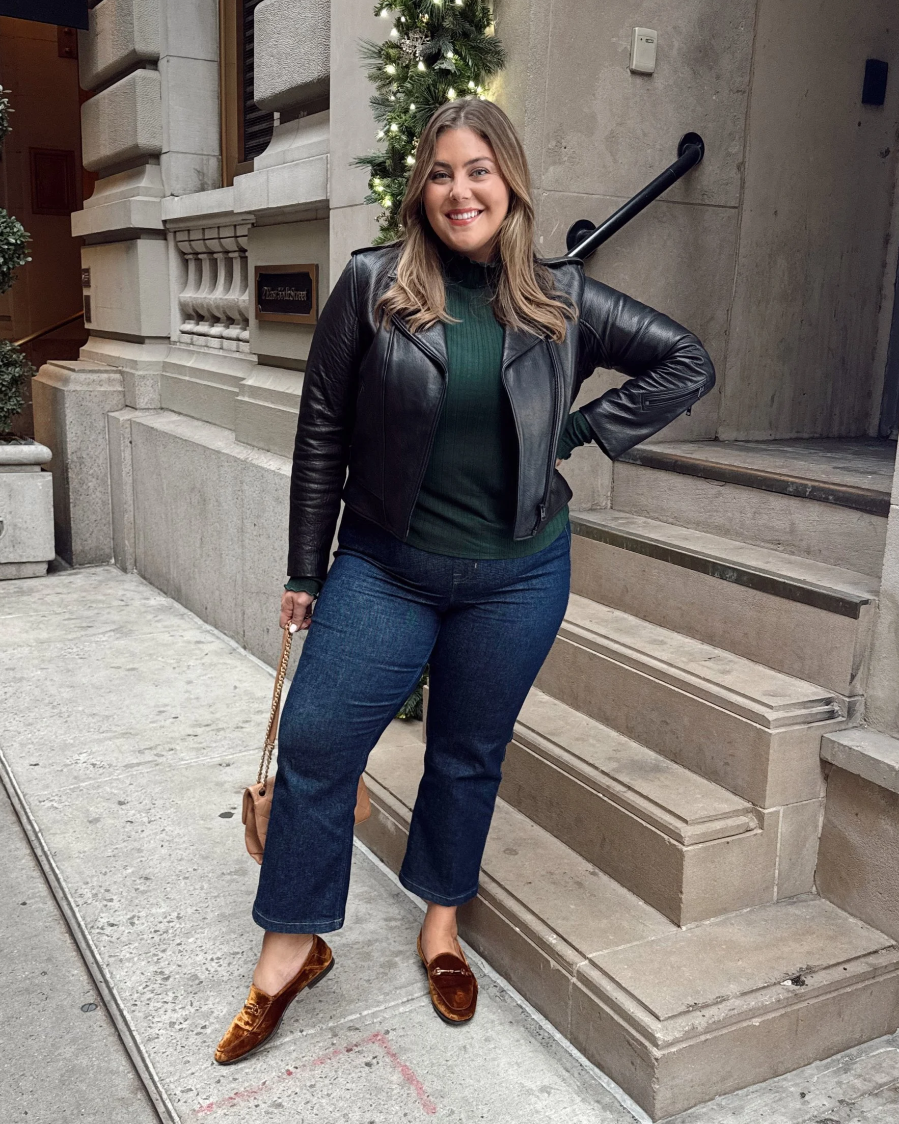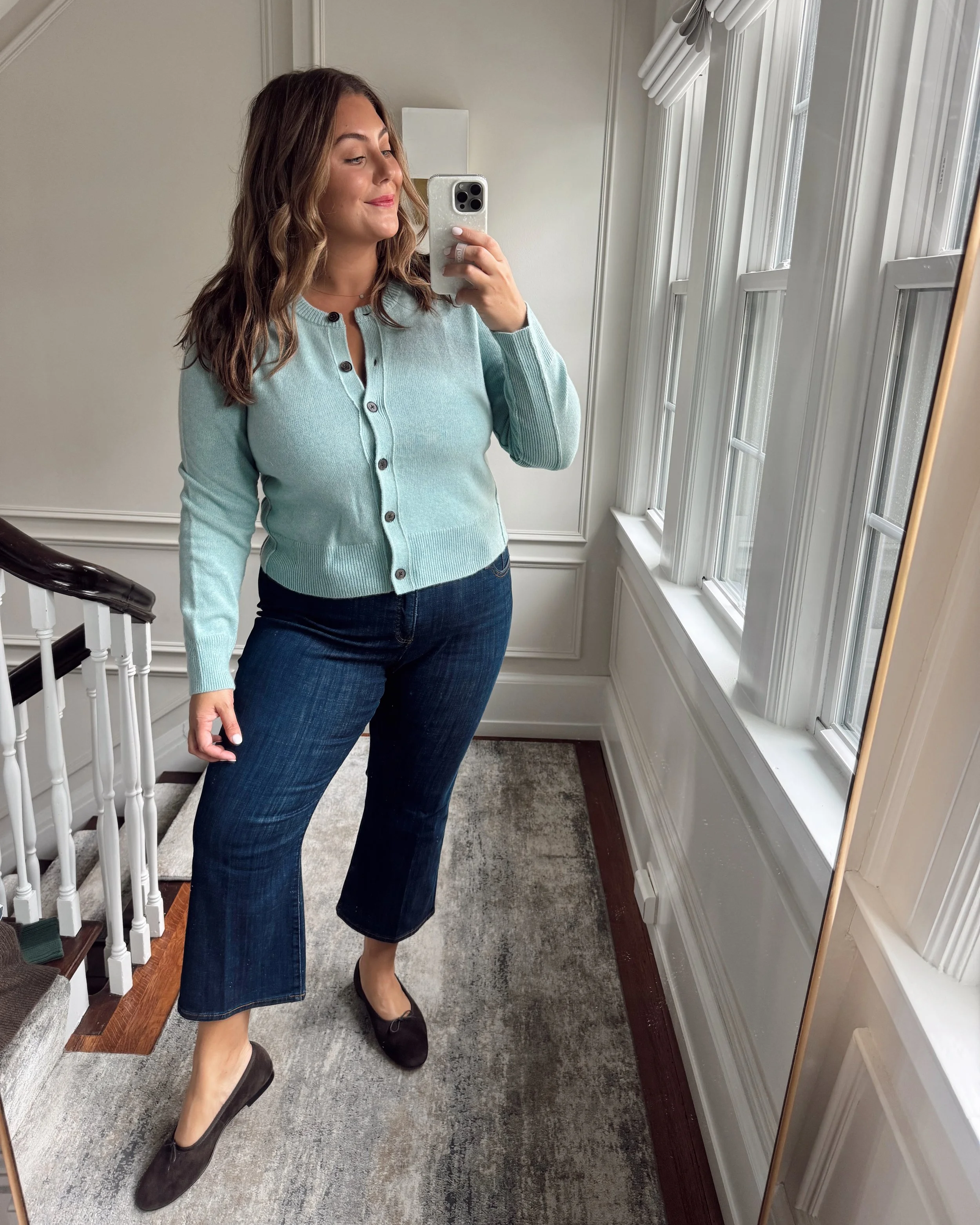 Cropped kick-out jeans (like these — use CARALYN15 on your first order or with a new email address) are such a great way to ease into the wide-leg world without going full drama. They’re super flattering on a range of shapes and pair well with flats, sneakers, or a little boot. I’ve been calling these my “out to dinner” jeans because they feel polished but still so comfortable.