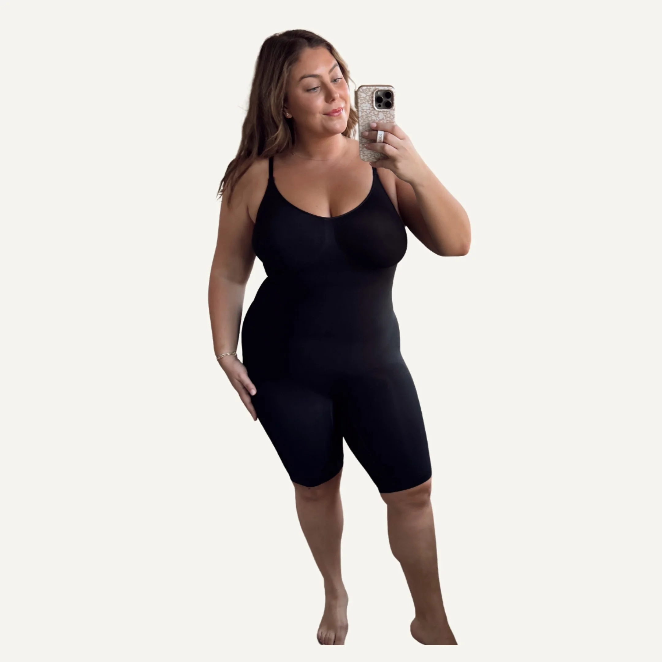 Under $30 and wildly good. This one-piece wonder is perfect under dresses, it smooths everything without suffocating you. Think gentle hold, not sausage casing. I wear the mid-thigh version, but it also comes without the shorts if that’s more your vibe. Consider this your everyday, no-lines, no-fuss base layer.