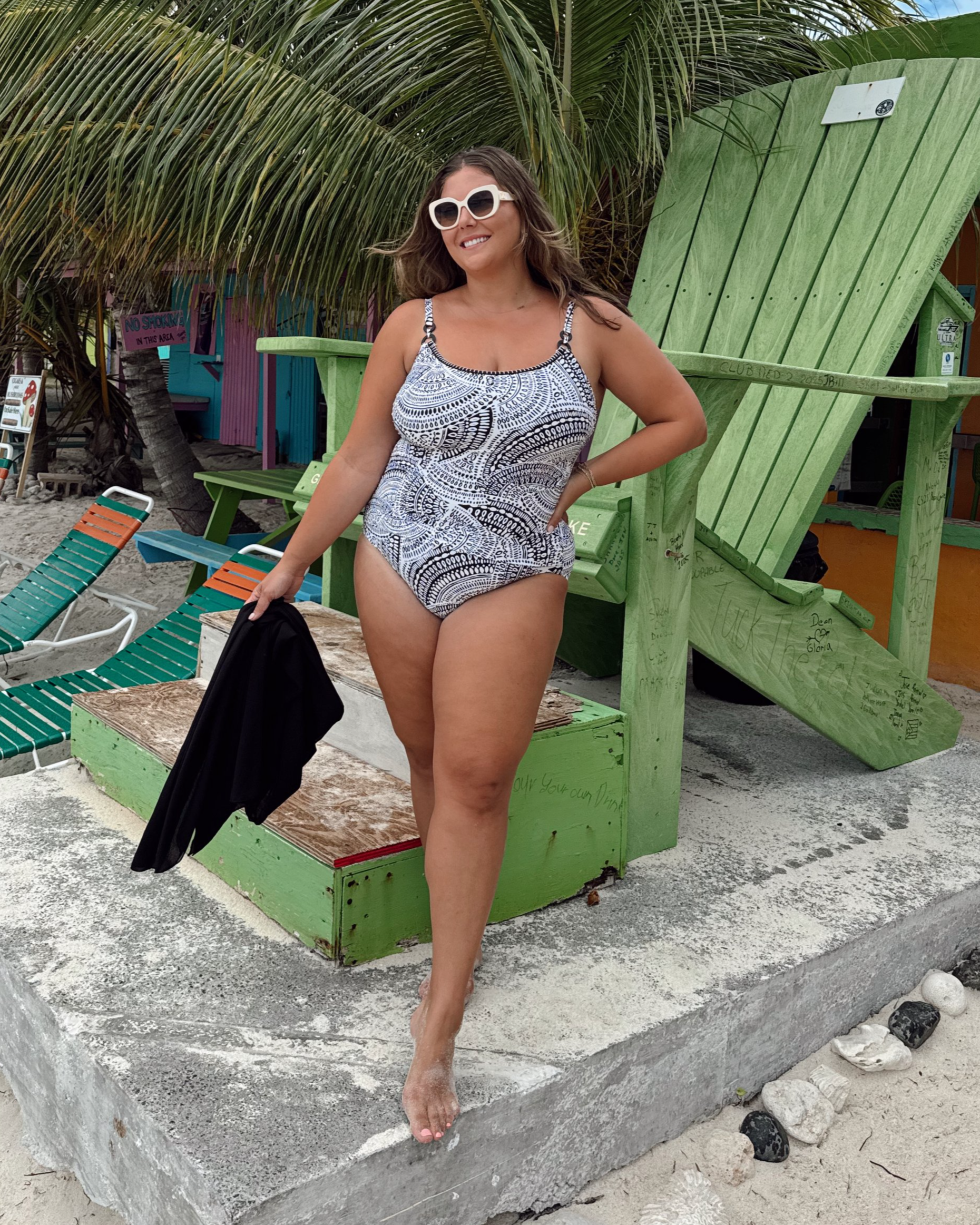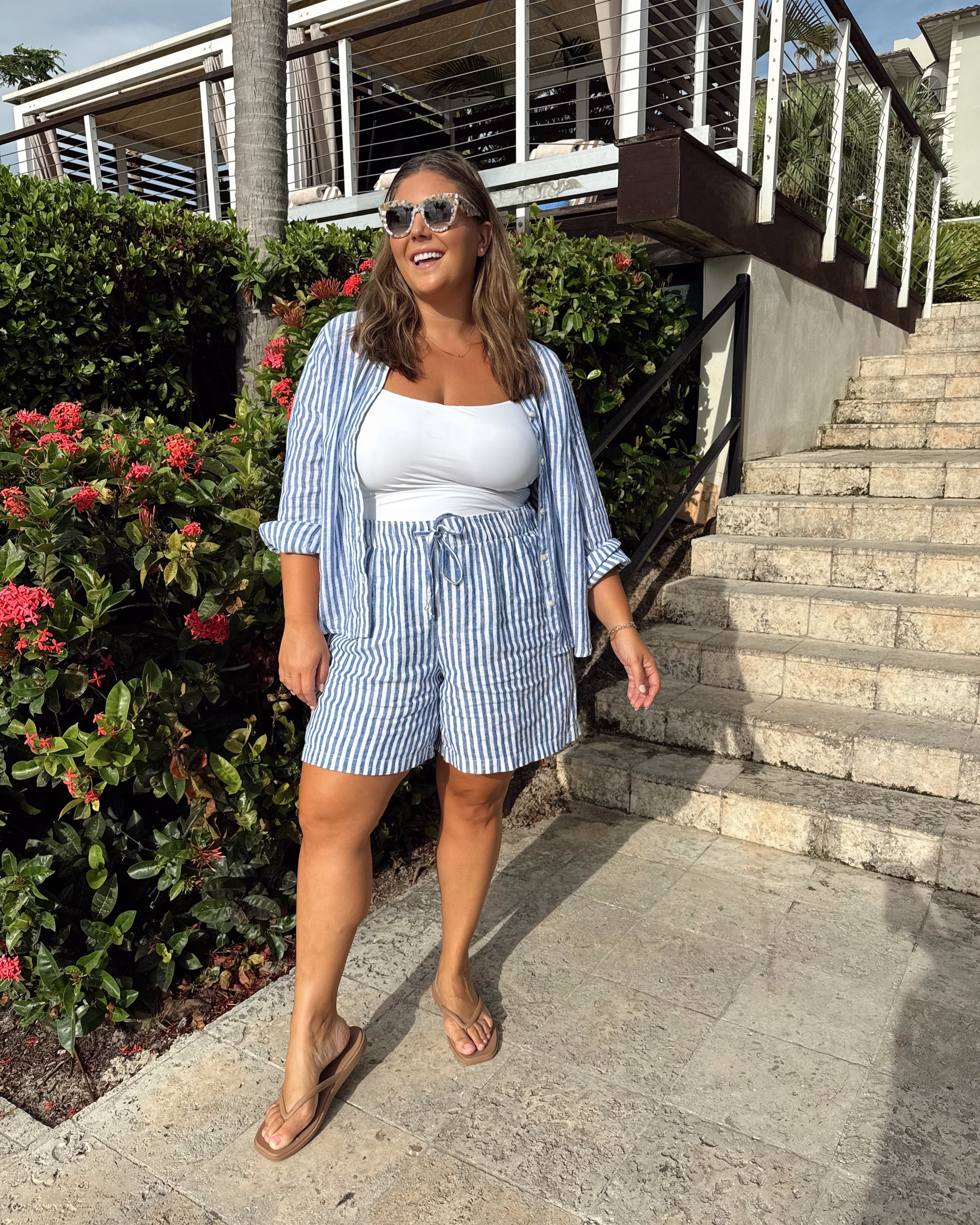 I always say: a good swimsuit can make or break your beach day. Earlier this year, I published my annual Swim Guide featuring everything from bra-sized support to bump-friendly options, and many of those favorites made it into my suitcase for this trip. I leaned into bold colors and playful prints, pairing them with easy breezy coverups that worked just as well poolside as they did for a quick breakfast or lunch run. Comfortable, supportive, and cute: the only swimsuits that SHOULD be on your body. And don’t forget my favorite pro-tip to swap that annoying padding out for nipple covers for a smooth and seamless look. You can learn more on that and my discount codes here!