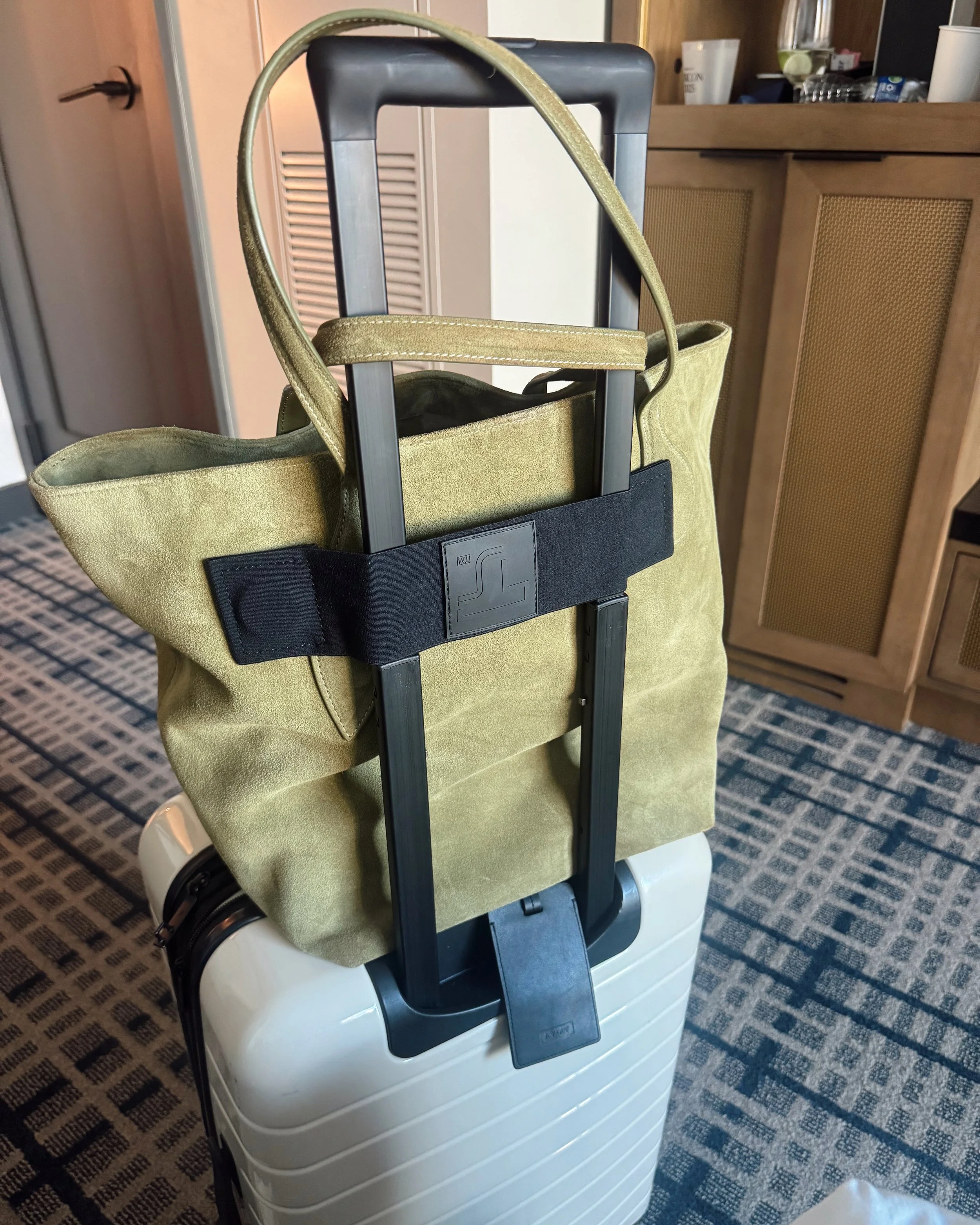Day four was all about getting home, but you know I don’t believe in sacrificing style for comfort. I reached for my go-to travel staples: leggings, layers, and my trendy barn jacket (featured in my Fall Style Guide for a reason). One hero detail I have to call out? This genius magnetic strap turns any tote into a travel-friendly carry-on by securely hooking to your suitcase handle. A total game-changer and a small business find. Because even on travel days, the details matter.