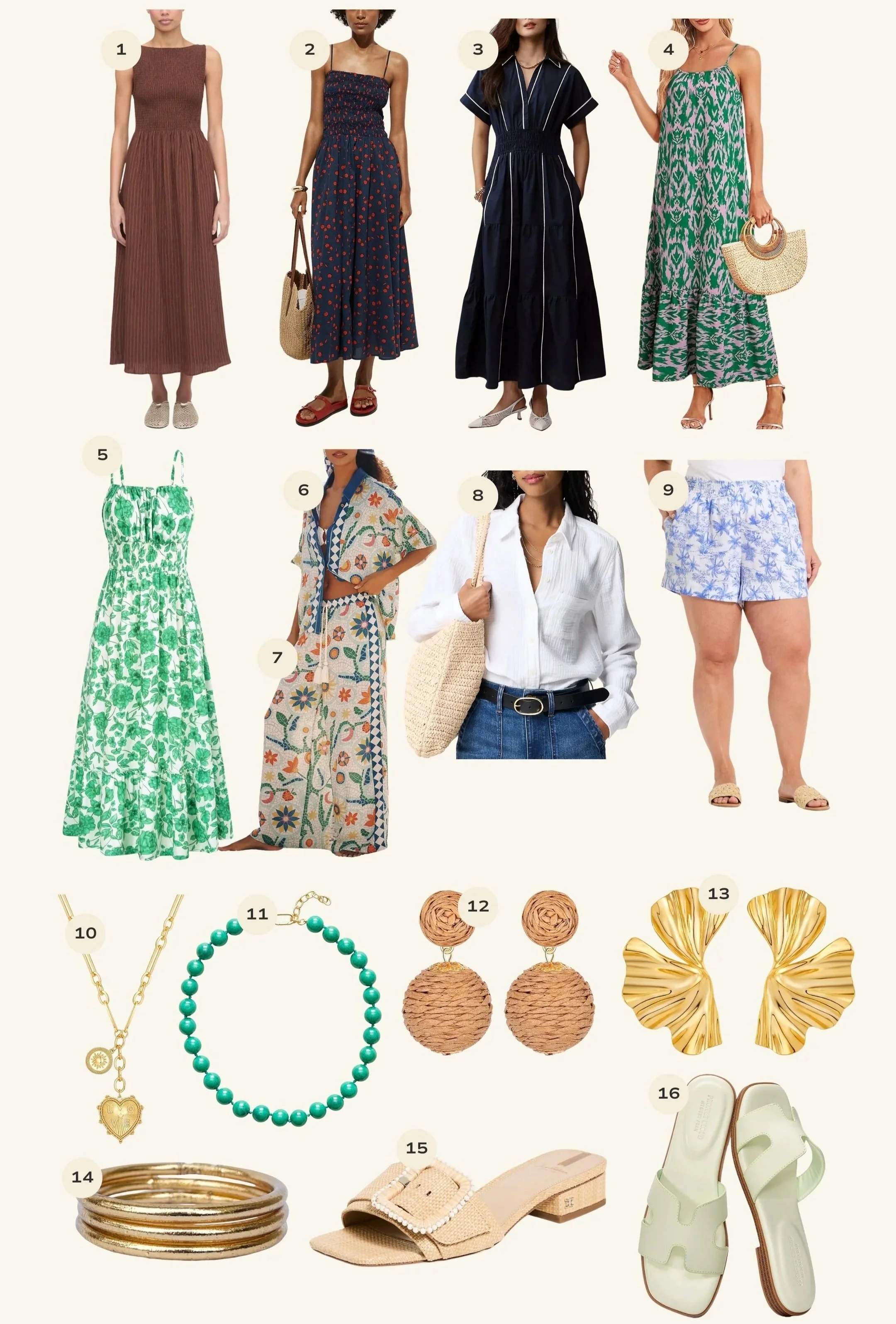 A fresh mix of warm-weather fashion picks, from easy throw-on dresses to lightweight cover-ups, relaxed shorts, and the jewelry I’ve been reaching for to pull it all together. If you’re looking for even more, you can browse all of my latest vacation looks here.