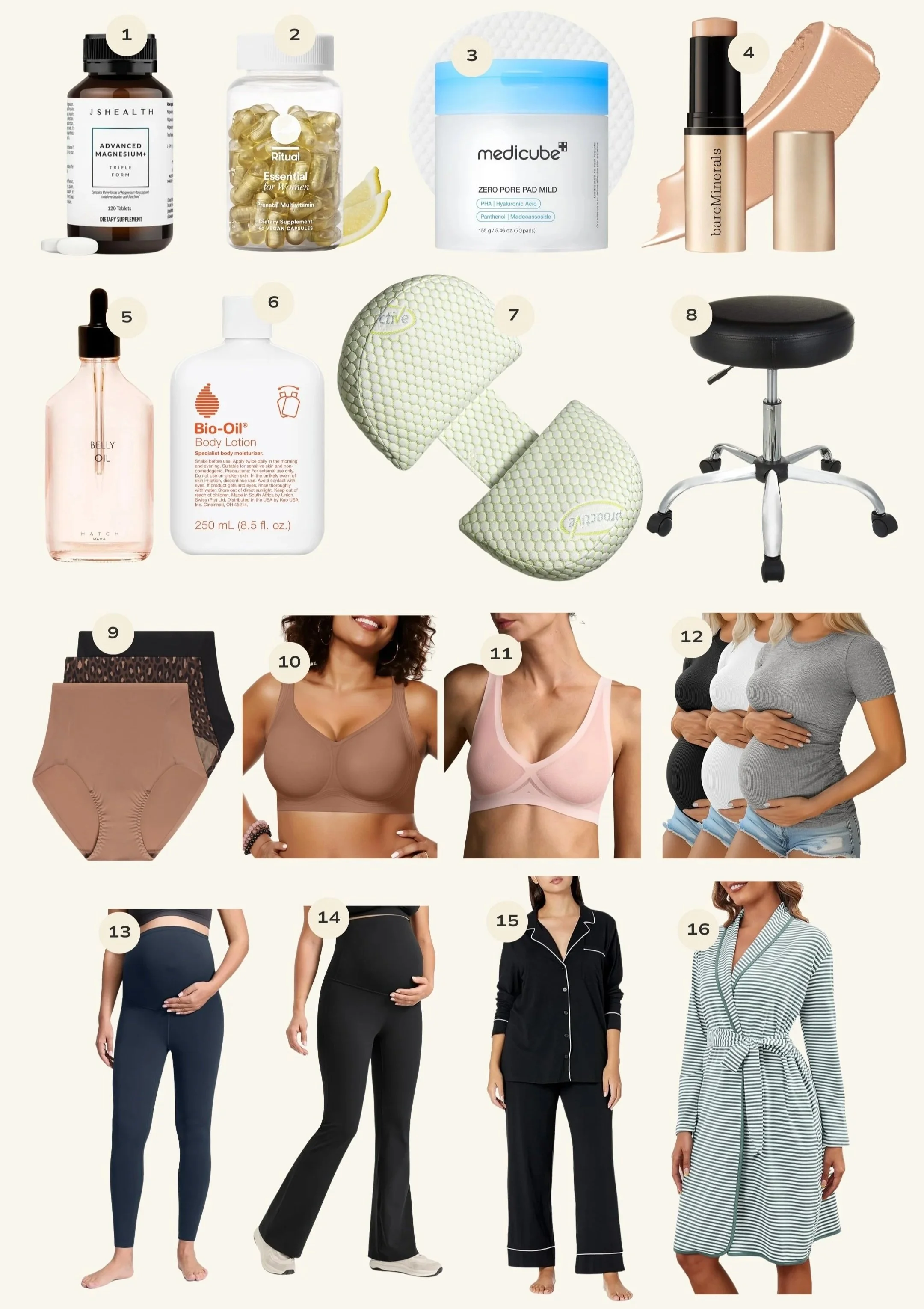 Wire-free bras are also non-negotiable in this phase. Everything needs to move, stretch, and adapt with you. I love this one for everyday wear and this one for sleeping, both are lightweight, breathable, and comfortable.