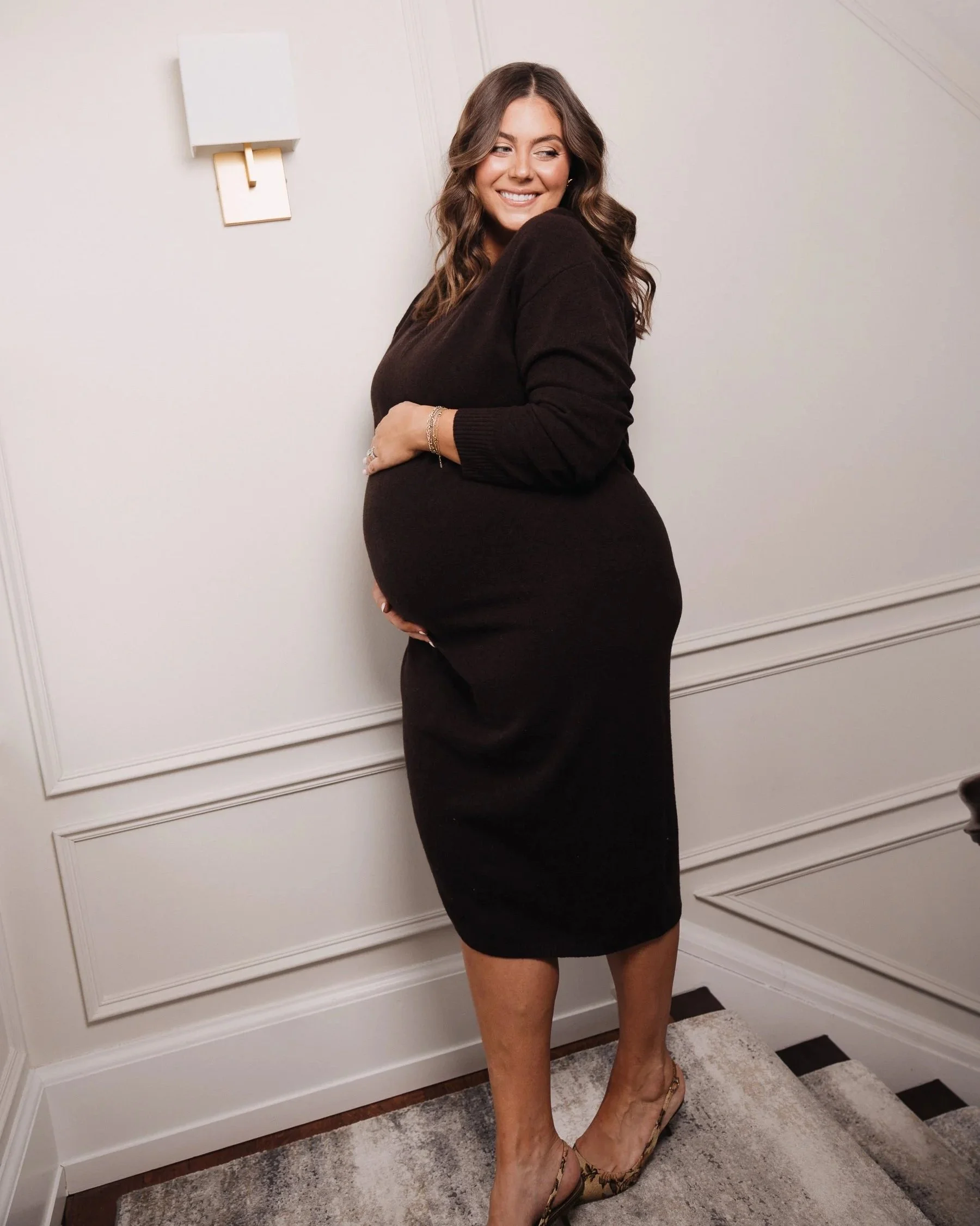 First, don’t feel like you have to limit yourself to traditional maternity clothing. Throughout this pregnancy, I’ve shared a lot of bump-friendly outfits that weren’t actually maternity pieces at all, stretchy dresses, ribbed sets, oversized knits, and other pieces that naturally adapt to a growing belly. Sometimes those end up feeling the most like you.
